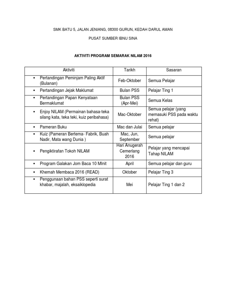 Aktiviti Program Semarak Nilam 2016 Pdf